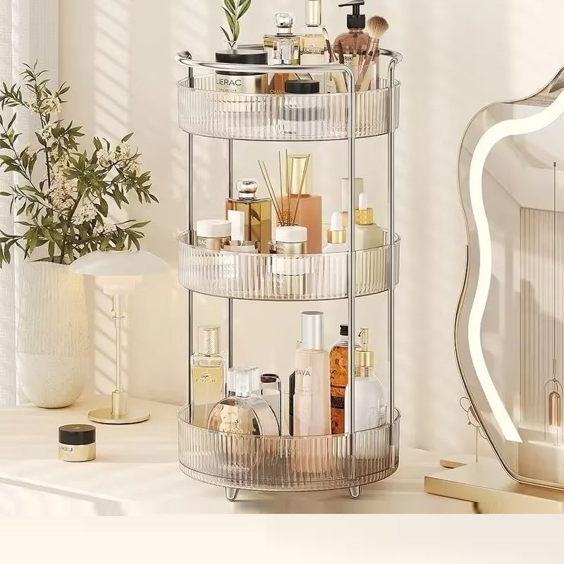 360° Rotating Makeup Organizer, Bathroom Makeup Holder, 3 Tiers Large Capacity Storage Shelf