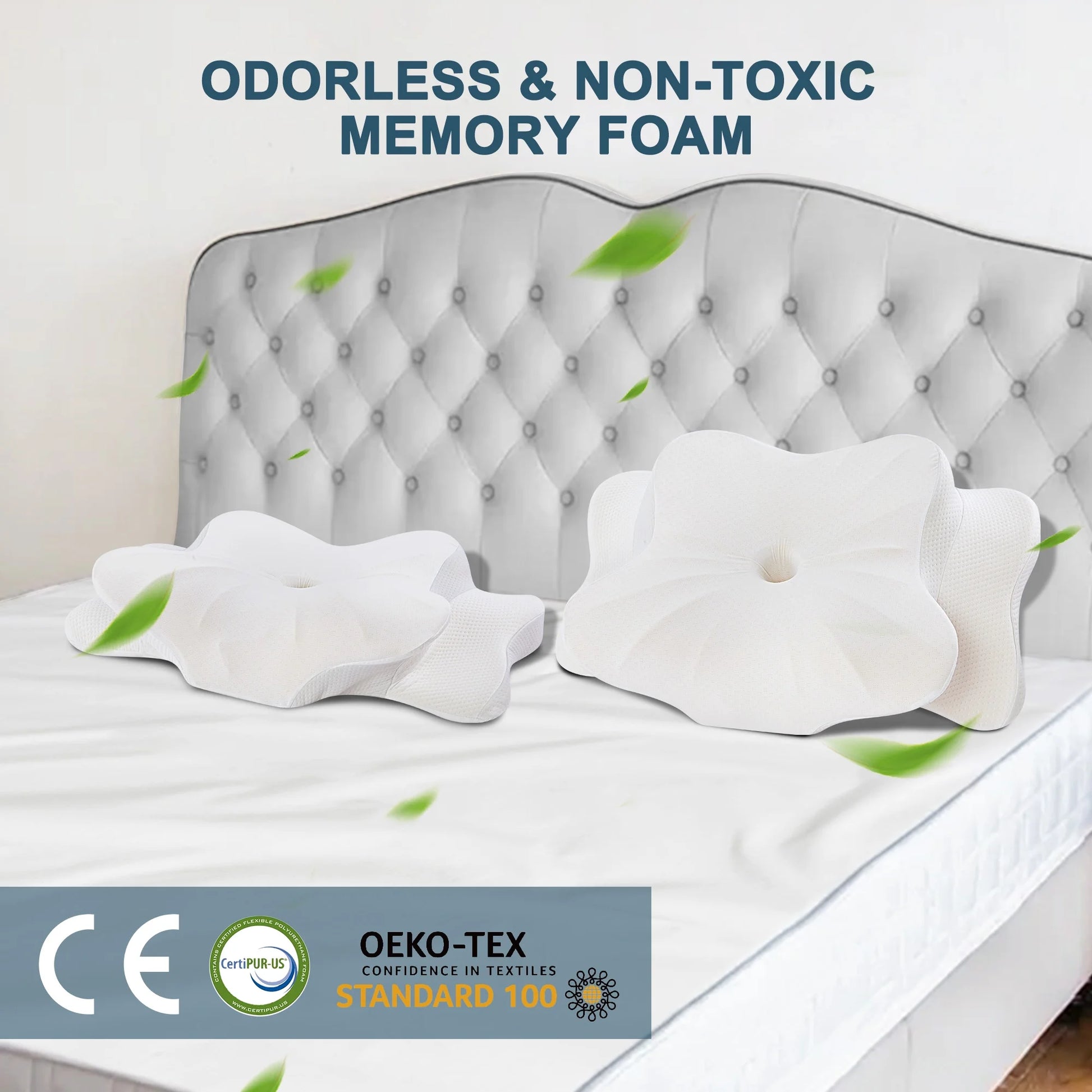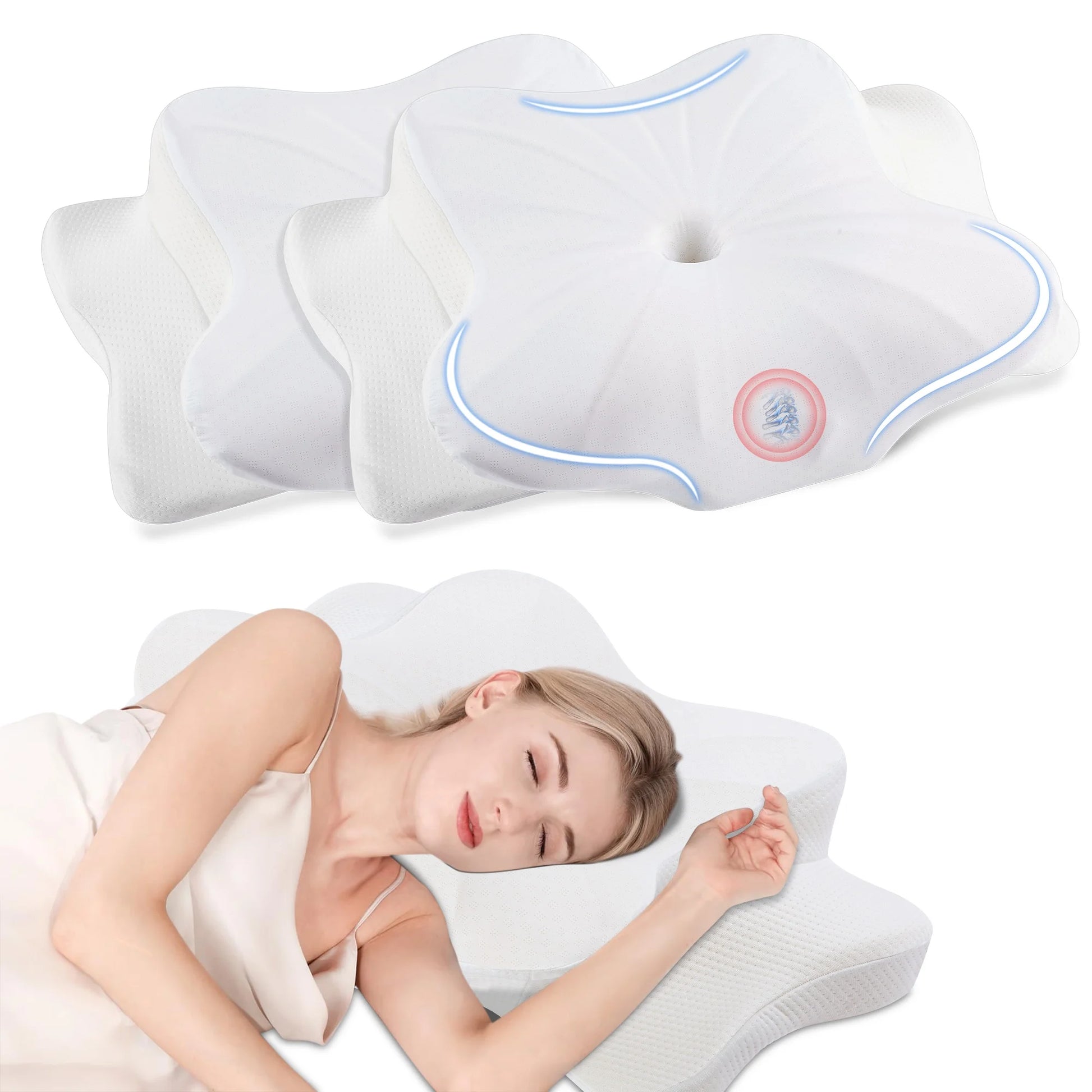 DONAMA 2 Pack Cervical Pillow for Neck Pain Relief,Memory Foam Pillow,Queen Size,White
