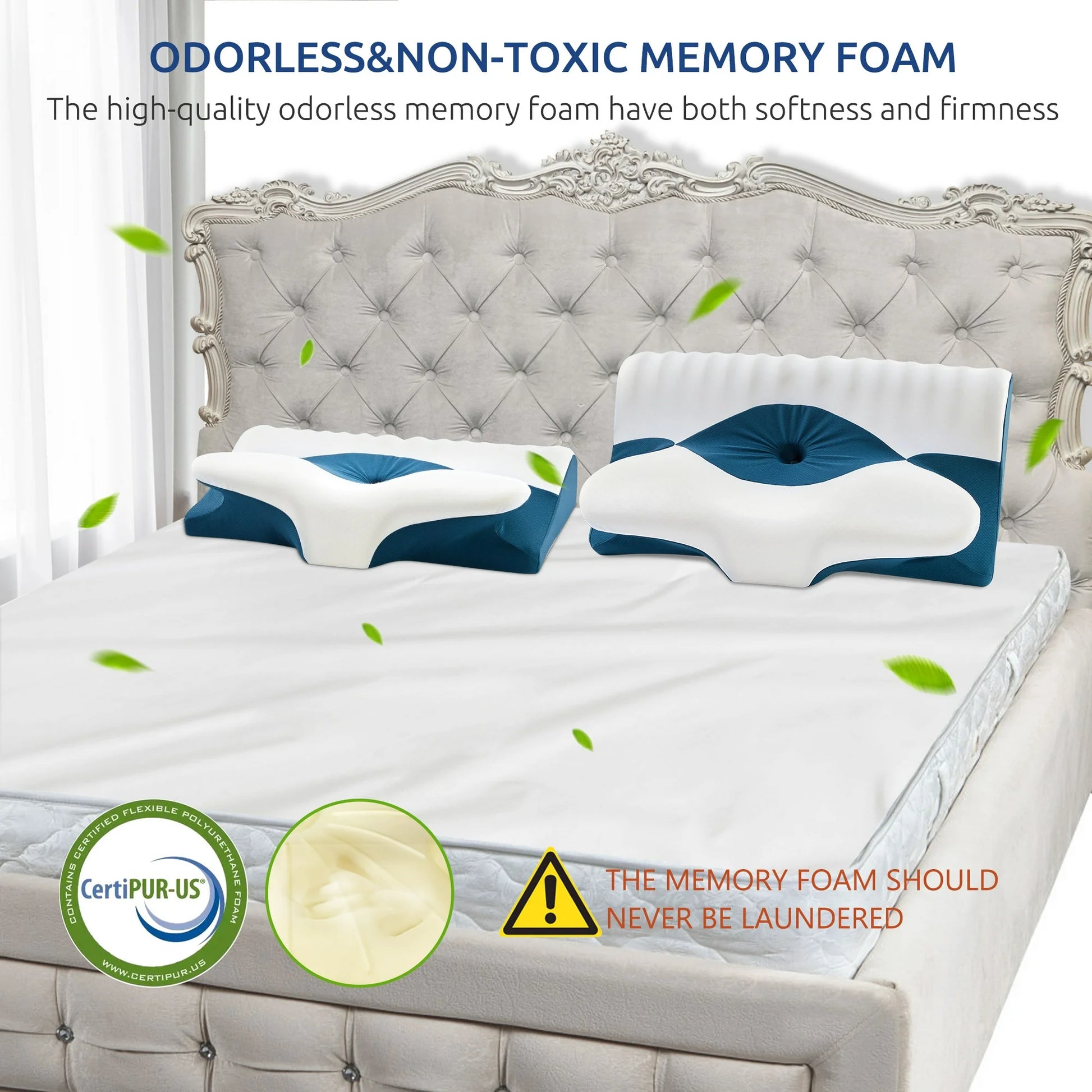 DONAMA Cervical Neck Pillow for Pain Relief Sleeping,Memory Foam Pillow with Breathable Pillowcase,Orthopedic Ergonomic Contoured Support for Side,Back and Stomach,Queen Size 23.62"×14.17"×4.72" Blue